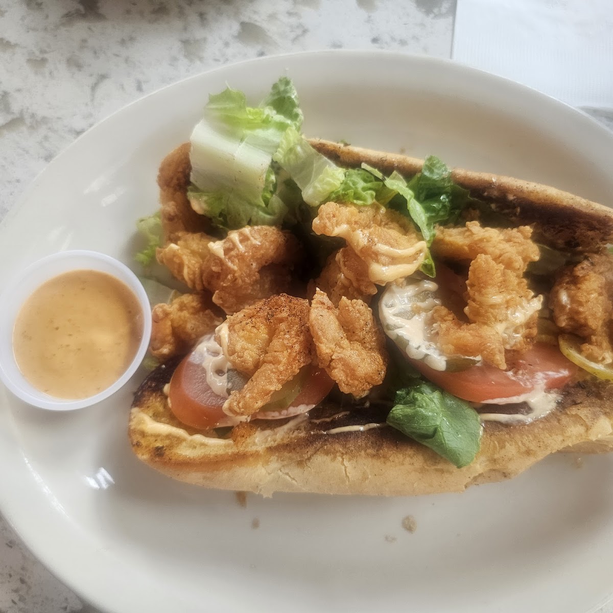 The menu leans heavily into Louisiana comfort favorites. Fried shrimp, catfish, oysters, and snapper baskets dominate, along with po’boys that come out heavy, messy, and exactly how people around here like them. I’ve ordered the fried shrimp plate more than once, and each time the shrimp were clearly fresh, lightly breaded, and fried hot enough to keep them crisp all the way through. According to data from NOAA Fisheries, shrimp is one of the most consumed seafood items in the U.S., and freshness makes a measurable difference in texture and flavor. That difference shows up here, especially compared to fast-casual chains that rely on frozen stock.